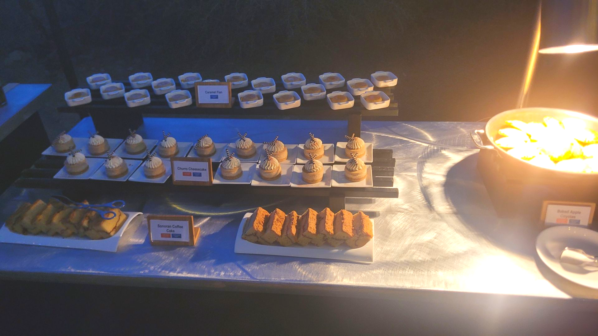 - Live Firepit S’mores Stations, Sonoran coffee cake, Churro cheesecake, Baked apple coyotas, Caramel flan