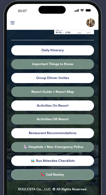For groups and individuals who book our Tier 3 full service planning services, you'll get access to our free travel app for easy access during travel that is custom to your trip! It includes: